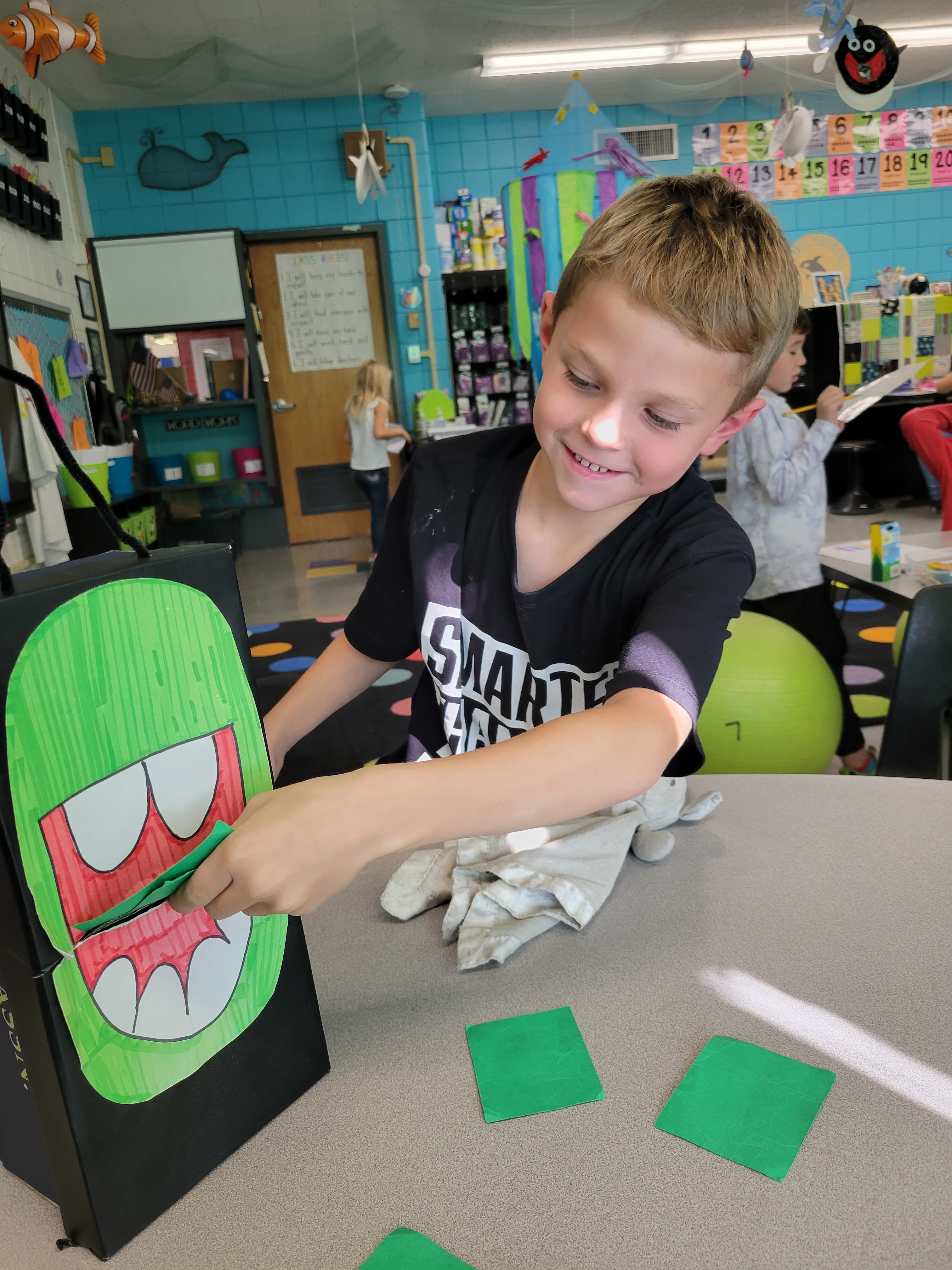 In math we worked hard to memorize our facts of 10!. We played Feed My Monster while in math groups. Feed My Monster is played like a memory game, but to a make a match you have to have 2 cards that equal 10. After we flipped the first card, Mrs. Wanke would not let us flip the second card until we told her what the matching card should be.